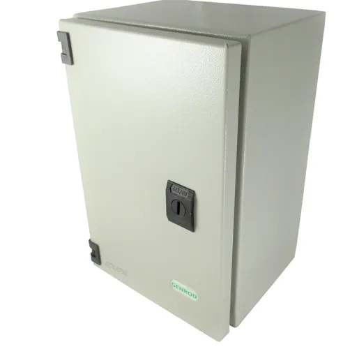 Gabinete metálico estanco de alta resistencia, ideal para aplicaciones eléctricas y electrónicas. Brinda excelente protección contra polvo, humedad y agentes externos. Fabricado por Genrod, modelo Serie 9000, medidas 250x300x150 mm.