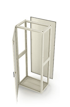 Gabinete metálico modular Serie 97 de Genrod, diseñado para aplicaciones industriales y eléctricas. Incluye zócalo bajo (SBJA), laterales (SLAT) y contra puerta trasera, ofreciendo gran resistencia y facilidad de montaje. Medidas 1200x600x300 mm.