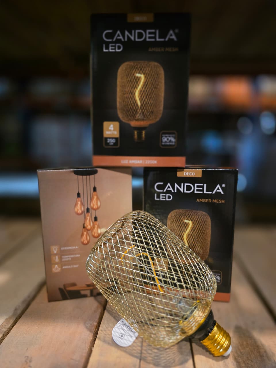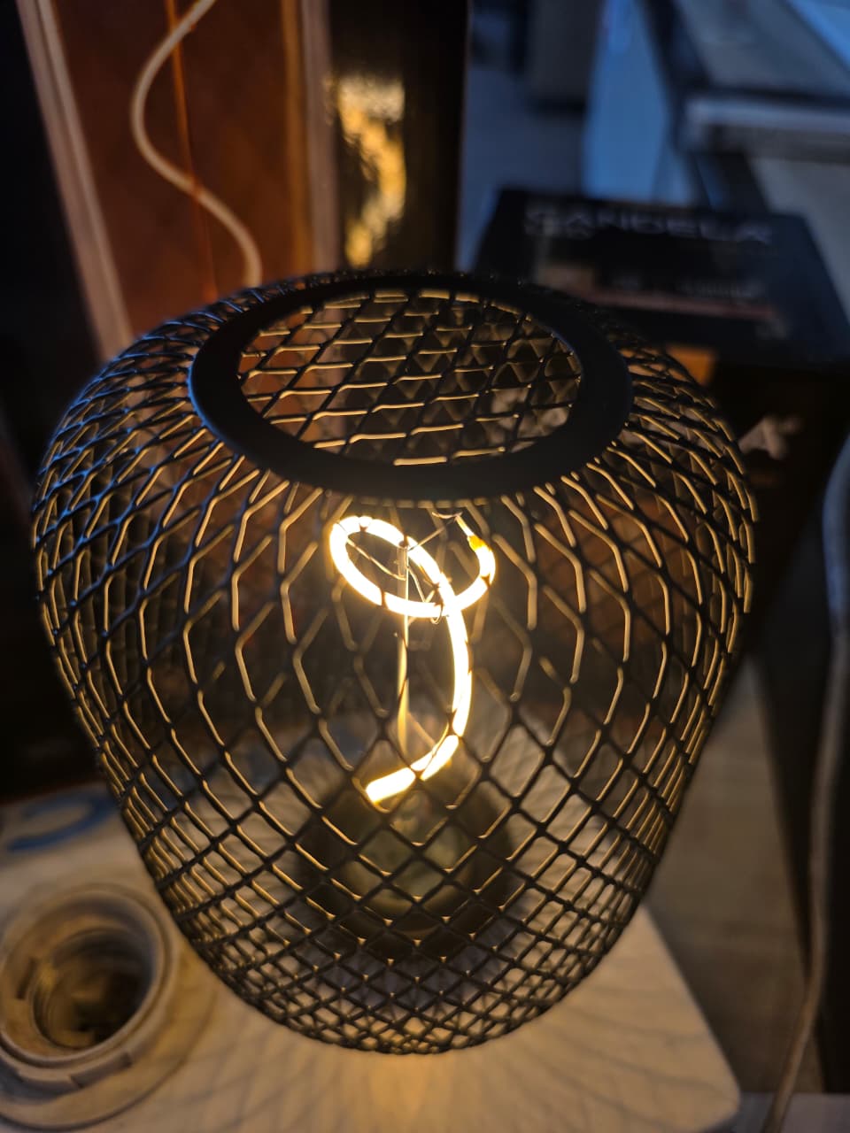 Lámpara de malla metálica con filamento led